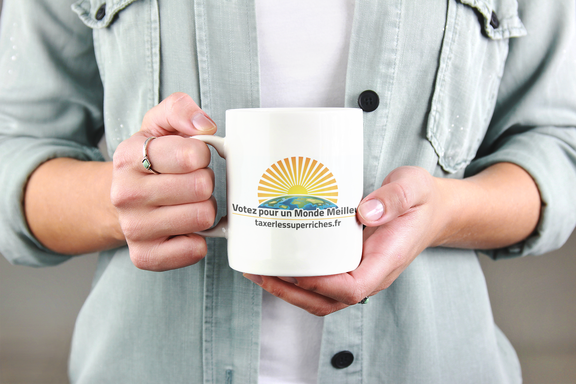 Emportez cette tasse au travail, posez-la sur votre bureau ou offrez-la à une personne qui croit en l’espoir et la justice.